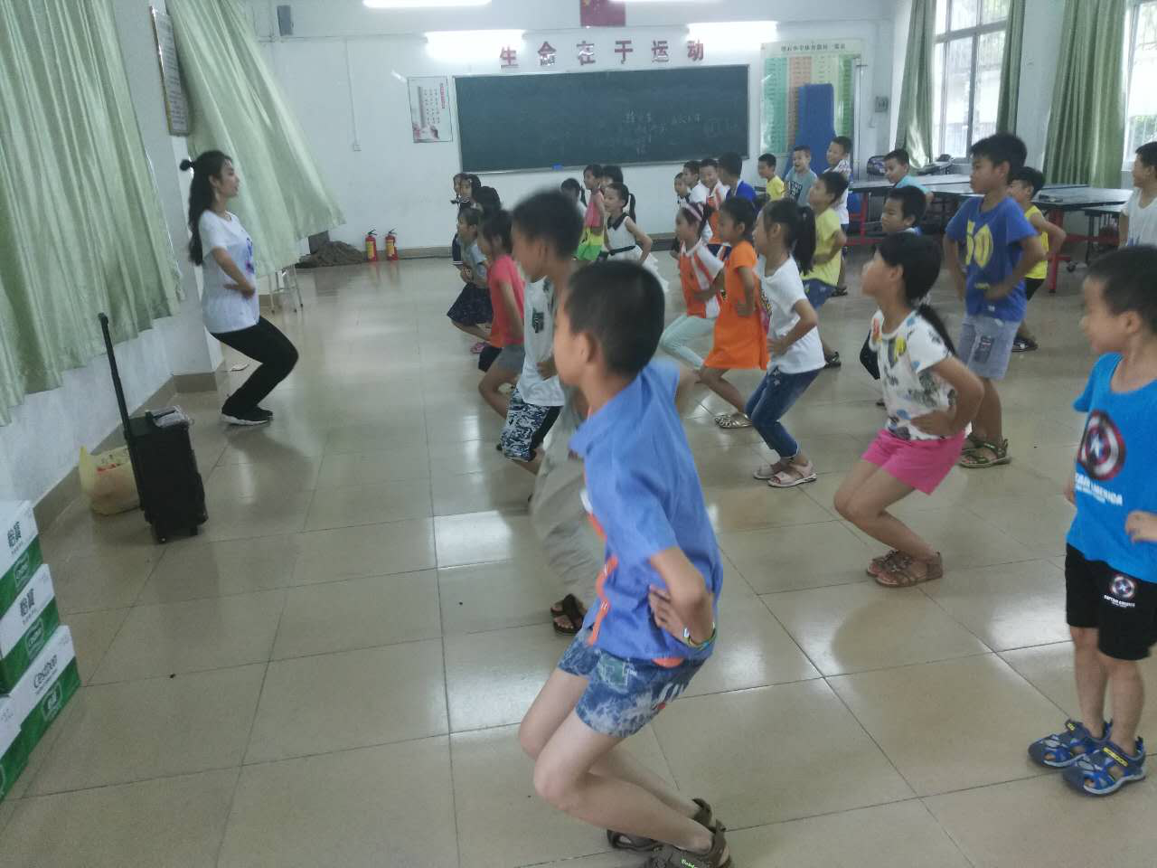 今日的课程为舞蹈课、体育课、美术课、天文课以及武术课。其中,最为让人印象深刻的当属舞蹈课,一上课,先由小老师带领小朋友们做运功前的伸展运动,并在活动筋骨后并对昨日教学内容进行回顾。随后,再是学习新的舞蹈动作。课堂上,小老师以幽默诙谐的方式帮助小朋友们记忆基础姿势和舞蹈动作。“争做小铅笔,不做橡皮泥”嘱咐了小朋友们要站如笔直的铅笔,不可随意摇摆如橡皮泥,“大西瓜”则用来描述舞蹈中双手并合向前撑的动作。小朋友们学得有滋有味,即使额头上沁出了汗珠也笑容满面。一节课下来,一整套的舞蹈动作就已经学完,实在令人惊叹不已。