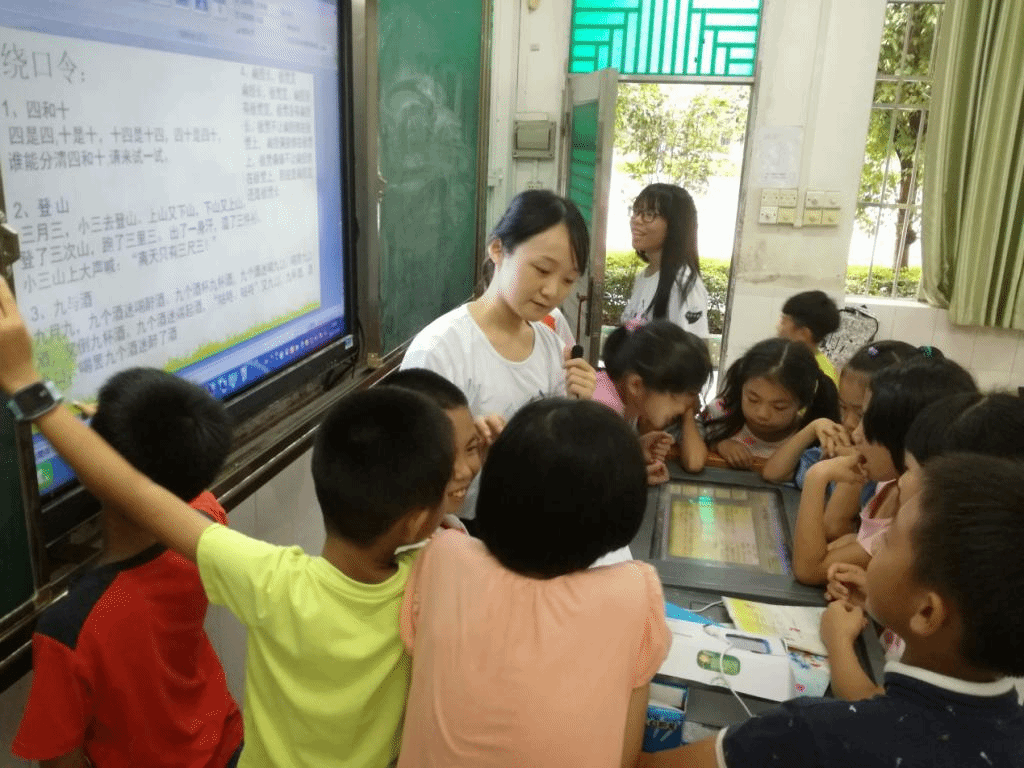 本网讯7月18日,今天是由马克思主义学院韩娟美老师带领的爱飞翔阳光天使服务队在穗石小学进行义教的第九天。义教组的成员依旧按时来到学校和孩子们一起继续学习生活。