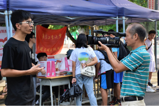 (图注:遂溪县电视台对助梦洋青队此次宣传调研活动进行拍摄)