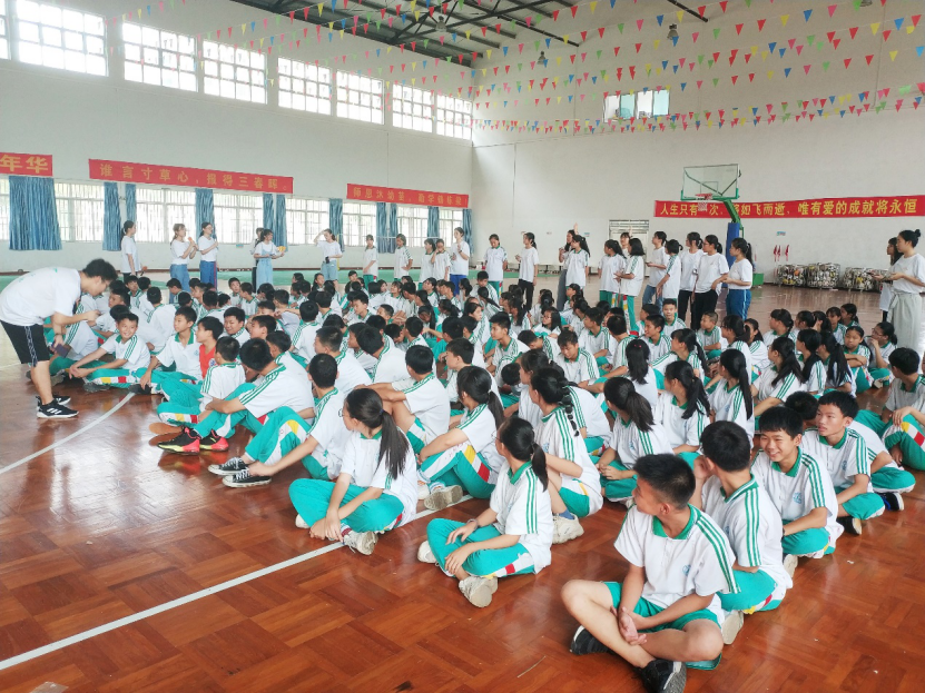 上午8点30分,“情之程”全体队员与同学们举行了见面会。其中担任各班班导的队员给同学们进行了简短的自我介绍,并带领他们观看了伟德国际1946与我方全体队员的介绍视频。随后,全体队员带领同学们在体育馆进行了一系列趣味小游戏,如“我是数字王”、“你踩雷了吗”等。最后,队员们对全体同学派发了明信片纪念品,并给游戏中得分较高的小组派发了小礼品作为奖励。