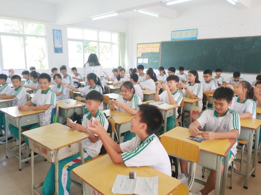 手工课上义教组成员教同学们折纸