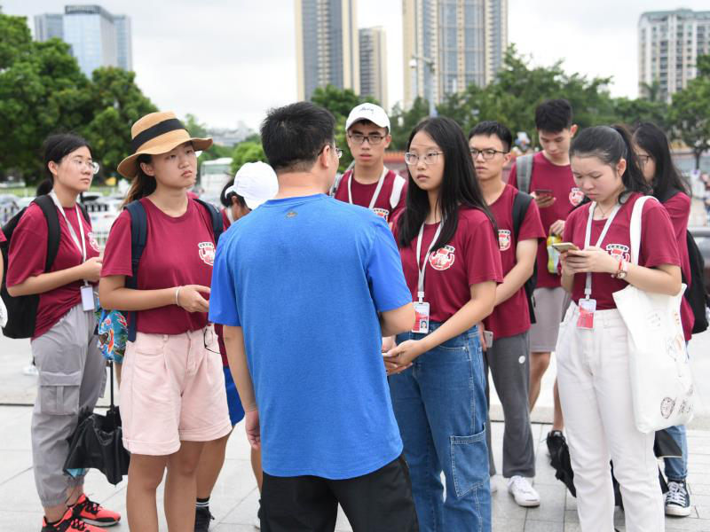 在二位老师到来前,第一小队与第二小队先各自完成原定调研任务,并于15时左右在圆明新园集合,共同等待叶昌富副教授的到来。约半小时后,叶昌富副教授与周新军教授抵达圆明新园大门,与“红砖精英”服务队的队员们成功会面。接下来,队长赖丹琦就近几天的工作情况进行总结,并请叶老师对我们的工作进行讲评。队员们均围站在叶昌富副教授的四周,神色严肃认真,细心聆听教授的指导。