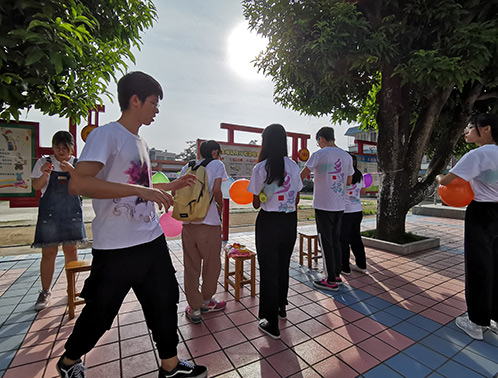 在早晨七点,策划执行组与义教组成员就在行政楼前空地着手准备物资以及测试设备。一个个气球和一次次搬运,寄托着的是对小朋友们满满的爱。当天的准备当中无处不展现出他们对即将到来的小朋友们的期待。