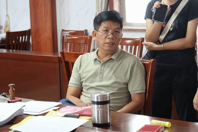 (松树村委会李土礼书记正在接受采访 蔡洁晴摄)