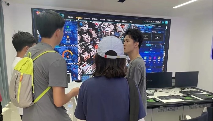 在黄龙村村委会对面的楼房上,赫然印着智慧黄龙数字指挥中心这几个大字,里面的工作人员也热情地向我们介绍了黄龙村特有的治理模式:黄龙村依托AI治理系统,发现、整改、监督并实时检测村内的日常生活。通过AI治理,不仅大大提高了防疫效率,也有效避免了从前电瓶车乱停乱放、房屋乱建的情况。他们还设置了积分制,坚定了村民们积极遵守规定、争做“三好村民”的决心。