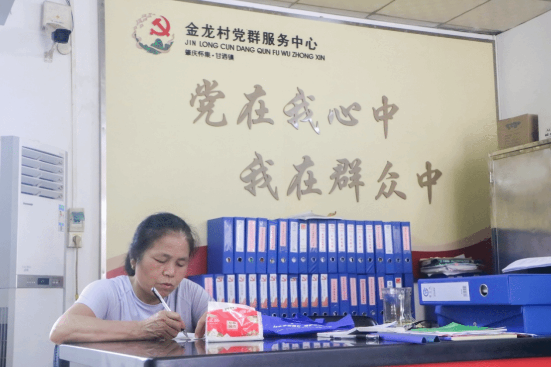 (邓玉英妇女主任在处理事务 银何摄)