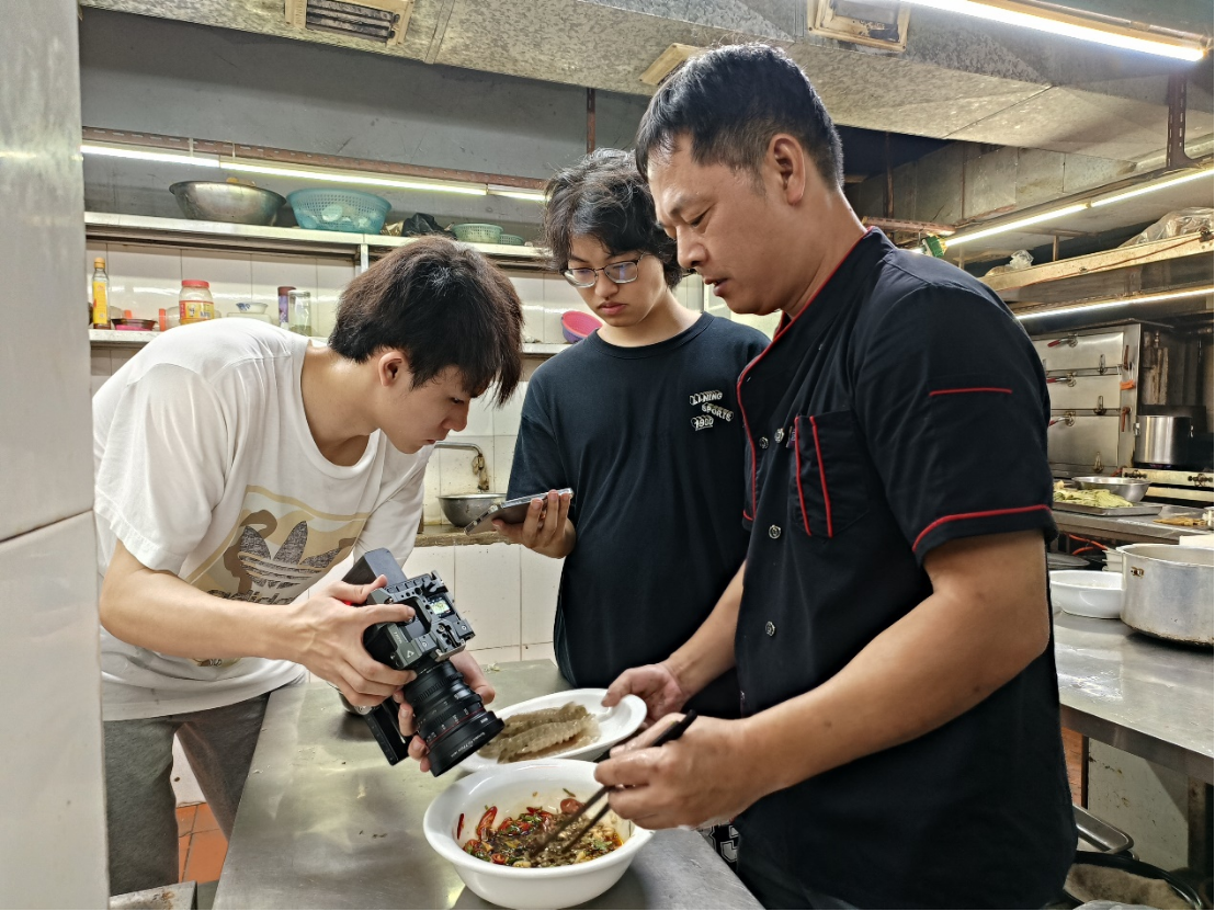 随后,团队成员继续动身前往凤湖海鲜大排档,进行潮汕生腌和潮汕蚝烙的拍摄。潮汕地区海岸线曲折绵长,海产种类繁多。潮汕人用海鲜为原材料所制成的潮汕生腌,在外人眼中是黑暗料理,但却是潮汕人心中舌尖上的盛宴。“潮汕生腌”素有“潮汕毒药”的美誉,这种“毒药”是只要吃过一次就会让人爱上那种鲜美的味道,从此无法割舍。潮汕蚝烙的做法极其讲究,采用优质多台雅雪粉,甚至连猪油都要用本地猪的鬃头肉煎出来的猪油。闻起来,蚝香味四溢;吃起来,口感酥而不硬,脆而不软。
