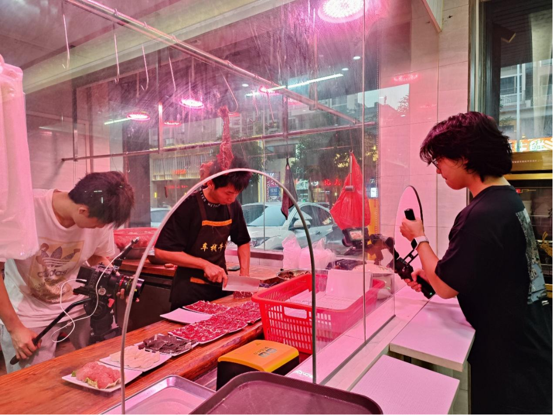 队员接着去疏导区的摊位获取拍摄素材,热闹的市场散发着浓浓人间烟火气。各式各样的食材,包括海鲜、肉类、蔬菜、水果......摊位的老板们都十分热情,欢迎实践团拍摄自己的摊位、食材,有的老板还专门沏潮汕功夫茶给队员喝。疏导区此行使得团队成员对潮汕人热情好客的印象更加深刻。