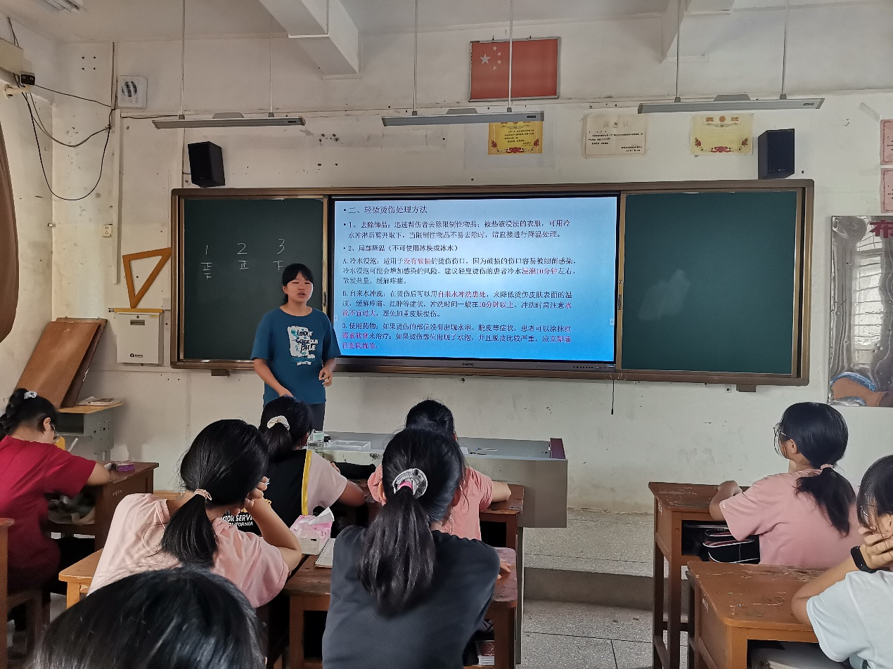活动中“一梦承乡”实践团成员林如给同学们带来了安全教育课程,向同学们介绍了意外发生时所必须懂得的急救知识、逃生要领以及包扎方法等。通过视频讲解、现场演练和课堂竞答相结合的教学方式,同学们树立了安全意识,积极防范生活中的安全隐患,同时也掌握了应对突发状况的有效措施,为美好的暑假生活保驾护航。