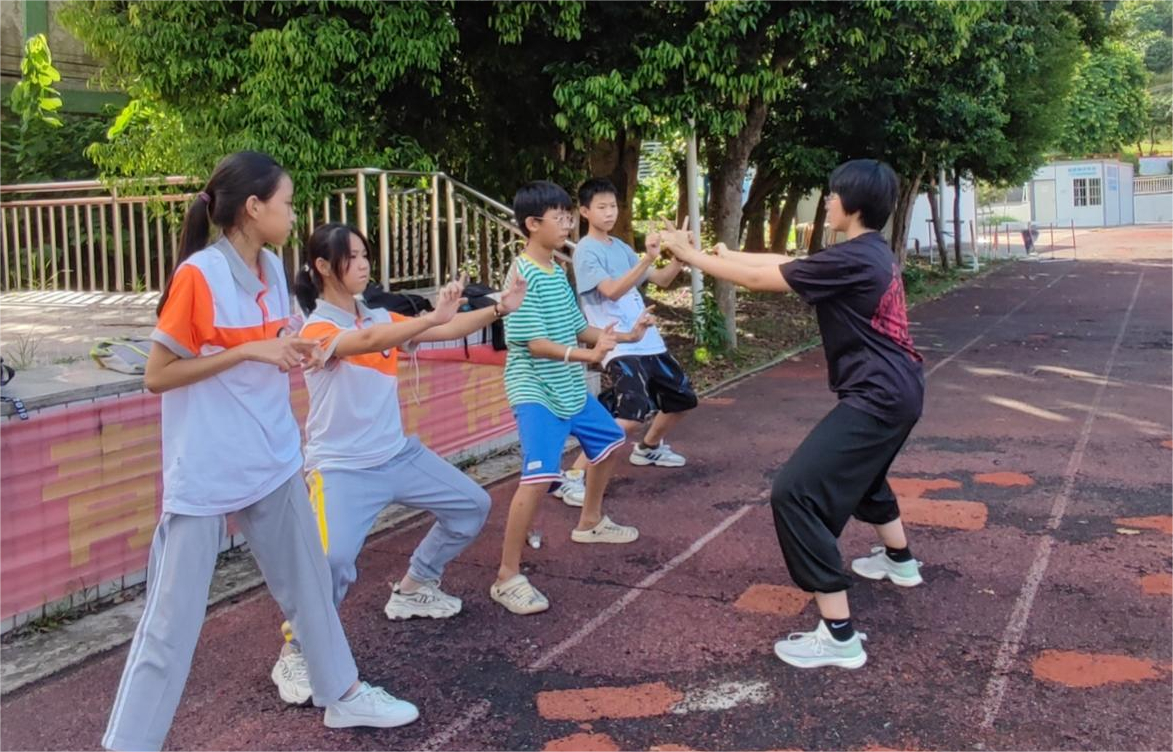 (“推普共赢”实践团陈怡琳老师讲授武术动作要领 谭安琪摄)