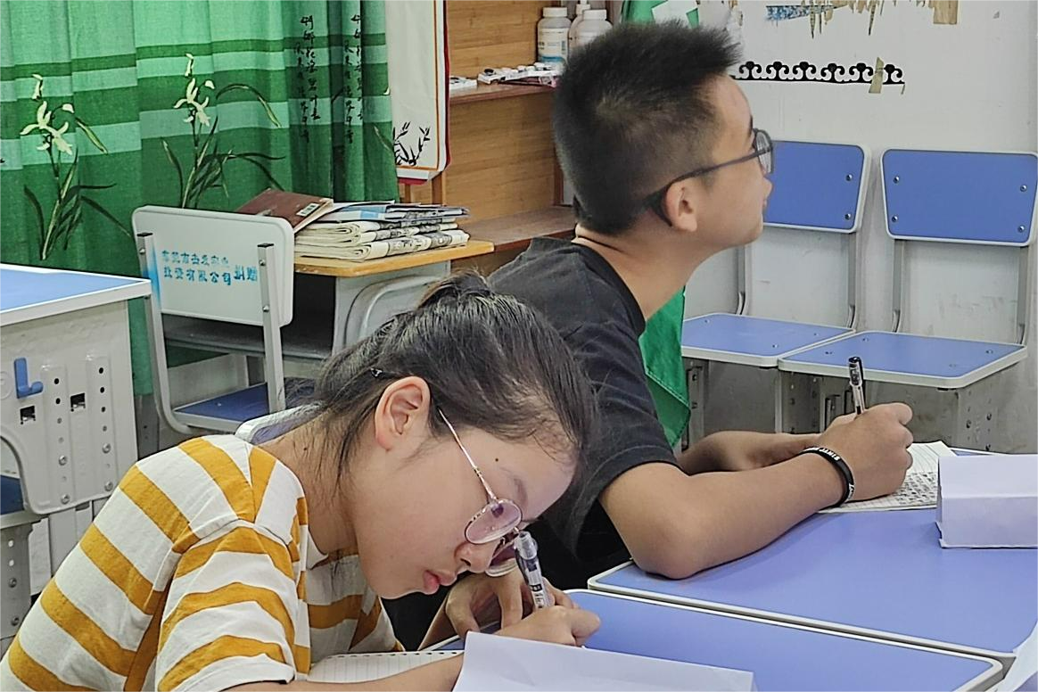 (球山中学夏令营学生针对课堂内容认真做笔记 谭安琪摄)