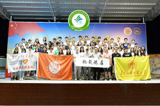 座谈会结束后,曹钟兴先生、卢树声先生、李树协校长、广外校四团Sum.mer服务队以及云潭一中的同学们一同到室外舞台合影留念。