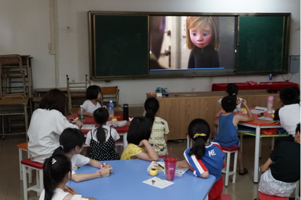新的一天,均安中心小学被晨光唤醒。早上9时,同学们整齐地坐在了座位上,义教组陈幸茹老师以电影赏析课——“《头脑特工队》赏析拉开了今日义教课程的序幕。为帮助同学们更好地理解电影内容,陈老师先介绍了影片的基本内容,紧接着,同学们在陈老师的带领下进入生动的电影世界。随着电影情节的推进,课室时而传出欢乐的笑声,时而传出紧张的惊呼。