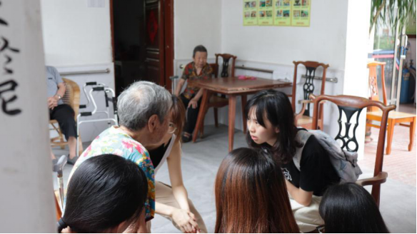 同学们还与慈爱院中的老人们聊天交流,询问他们的入住原因、生活日常,对护理人员、社工的满意程度等。