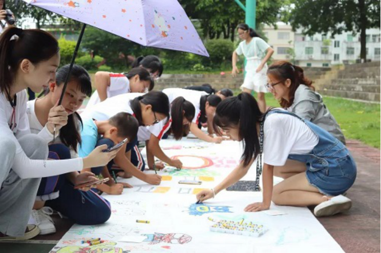 本次趣味运动会分为学生个人游园项目,学生集体项目,教师项目三部分。在主持人宣布活动开始后,7个小游戏摊位前瞬间布满学生。在“百”米长卷绘大湾游戏中,每班的同学都画了自己对大湾和夏令营的印象,流露出对这次夏令营活动和老师的喜爱。在“仙人指路”游戏中,参赛队员按照队友的指示,一步一步越过障碍,迈向终点。尽管在活动中天公不作美,突然下起微微细雨,也丝毫未减弱学生们参与的热情。
