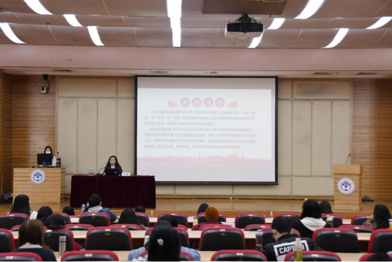 马克思主义学院傅薇老师作题为《深入学习〈决议〉,践行初心使命》的专题讲座。她围绕《中共中央关于党的百年奋斗重大成就和历史经验的决议》,通过“三个需要”“三点把握”阐释了《决议》的精髓要义,回顾了党的百年奋斗的四个历史时期和四个伟大飞跃,集中展示了党的百年奋斗辉煌成就的华丽画卷,展示了我们党践行初心使命的坚定意志、战略定力和非凡成就。她指出,《决议》是一篇马克思主义的纲领性文件,是新时代中国共产党人牢记初心使命、坚持和发展中国特色社会主义的政治宣言,体现了习近平新时代中国特色社会主义思想的新发展,明确了我们党和国家未来发展的战略性方向。傅薇寄语师生,要深入学习《决议》,旗帜鲜明、立场坚定,在学思践悟中坚定理想信念,在奋发有为中践行初心使命,共同奉献于实现中华民族伟大复兴的新征程。