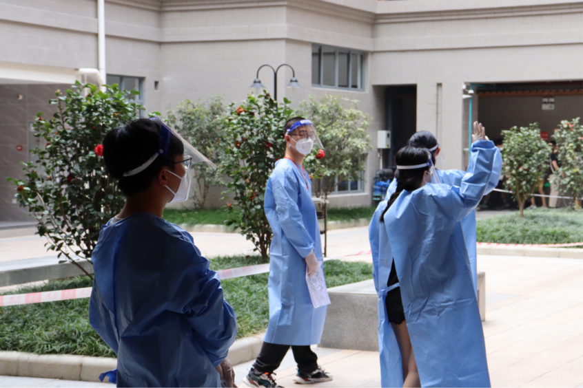 3月15日上午八点,志愿者提前奔赴设于一教、二教、六教及七教架空层的核酸检测点集合,进行核酸检测相关事宜的培训。大规模核酸筛查往往时间长、人数多,需要志愿者们的耐心指引和有序分工。参与本次核酸检测志愿工作的志愿者担起责任与使命,坚守岗位,听从指挥,协助核酸检测工作顺利而高效地进行,为防疫抗疫贡献了广外青年的力量。