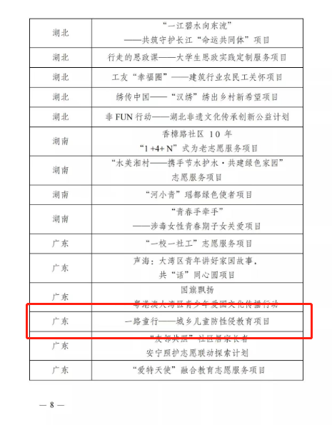 《一路童行--城乡儿童防性侵教育项目》获中国志愿服务项目大赛金奖
