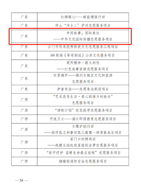 项目名:“中国故事,国际表达——中华文化国际传播志愿服务项目