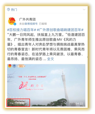 《风的力量》被“共青团中央”官方微博转发推广