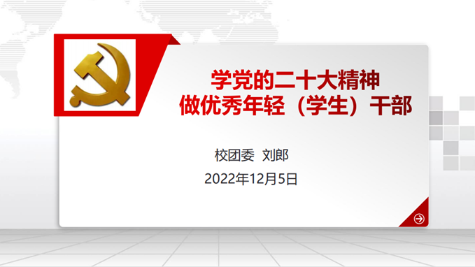 2022年12月5日,校团委线下线上联动,在白云山校区第六教学楼104会议室召开校团委党支部、伟德国际1946,Bevictor伟德,伟德官网,伟德网页版师生联动学习党的二十大精神会议,共学党的二十大精神,共度国际志愿者日。校团委党支部、伟德国际1946,Bevictor伟德,伟德官网,伟德网页版全体师生党员同志参加会议,进一步深入学习贯彻党的二十大精神,引领党员同志深刻领会、准确把握党的二十大精神实质和深邃内涵,抓牢抓实校团委年轻干部和学生骨干的政治理论学习。