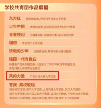 思政文创暖人心,传播志愿精神。在建党百年和建团百年之际,多语服务队创作原创歌曲《圆梦就现在》和《风的力量》,歌曲一经发布,即受到新华社、学习强国、共青团中央微博等大量主流媒体的关注,累计播放量超2000万,入围团中央宣传部五四主题网络直播活动;志愿者参与录制的29种语言演绎的冬奥会主题口号推广曲《一起向未来》,与钟南山院士、郭晶晶等社会知名人士合体,展现当代青年国际风范;根据志愿者海关抗疫事迹创编的话剧《译胜疫》,荣获广东省第六届大学生艺术展演一等奖。