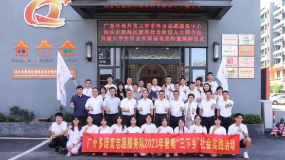 语言服务助力乡村振兴建设。多语服务队深入贯彻落实团中央关于乡村振兴青春建功行动的精神,和广东省委“百县千镇万村高质量发展工程”,弘扬社会主义核心价值观,多语言志愿服务队围绕优化乡村语言环境、提高乡村语言服务能力、建设语言文化品牌等方面,每年组织3000余名志愿者开展暑期“三下乡”社会实践,在服务地区开展推广普通话语言政策宣传、“师市英语教师能力提升”语言教育培训、优质外语教学课堂构建。多语言志愿服务中心与西语学院、东语学院和新闻学院等单位联动,组建国际传播人才队伍,赴汕头、韶关、珠海等地开展活动,用年轻人喜欢的演绎方式转化为生动鲜活的系列多语言短视频。同时依托“中国语言资源保护研究中心语保志愿者工作站”,举办方言文化主题讲座、“记录家乡最美瞬间”摄影比赛等活动。用不同的方式将方言文化的传承与创新融入乡村治理,有力地支持了乡村语言生态建设,服务新时代乡村全面振兴。