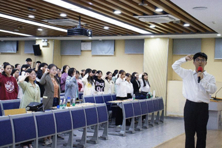 尾声将至,团支书们重温入团誓词,齐唱《光荣啊,中国共青团》,为本次会议画上句号。希望往后的日子里,团支书们能够在学习和工作中起模范作用,引领所在的团支部不断前行,为新时代的共青团事业添砖加瓦。