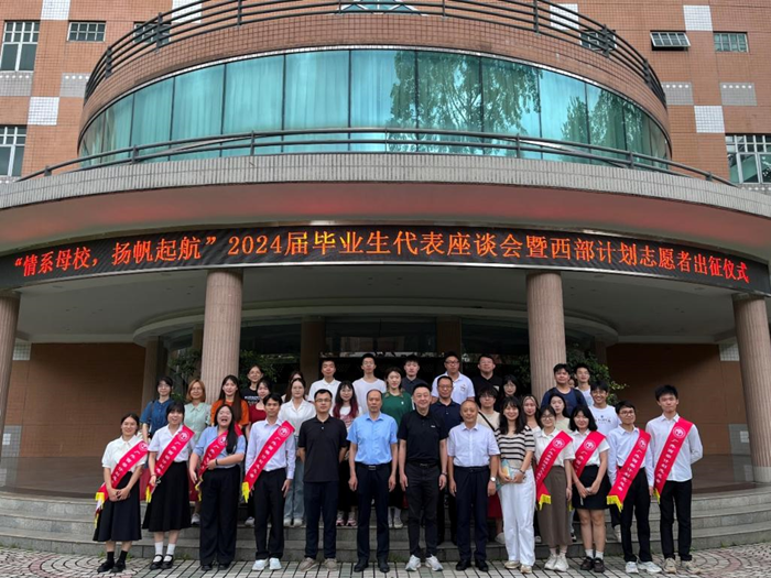 本网讯 6月24号下午,“情系母校,扬帆起航”2024届毕业生代表座谈会暨伟德国际1946志愿者出征仪式在行政楼第二会议室举行。校党委副书记唐锐、校团委书记刘郎、研究生院院长杨励、学生就业创业中心主任康为茂、校友事务与合作发展处副处长刘庆丹以及各学院优秀学生代表、伟德国际1946志愿者出席本次座谈会。