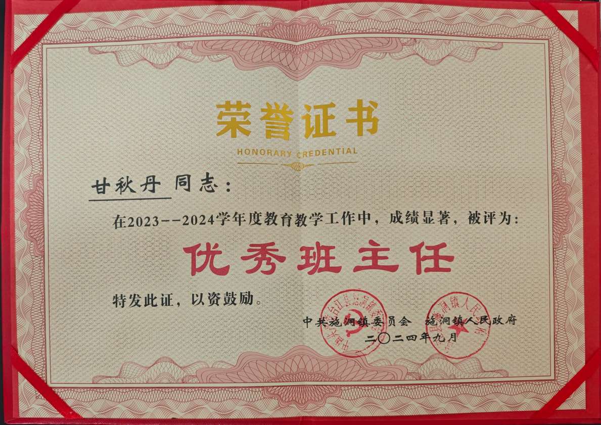 近日,贵州省黔东南州教育局发布了2024年教师节拟推荐通报表扬优秀个人和先进单位名单,伟德国际1946马克思主义学院研究生甘秋丹被评为2024年贵州省黔东南州“优秀支教工作者”。与此同时,甘秋丹还获得台江县“优秀支教工作者”、台江县“优秀志愿者”、施洞镇“优秀班主任”荣誉称号,其所带班级荣获2024年台江县“先进班集体”荣誉称号。