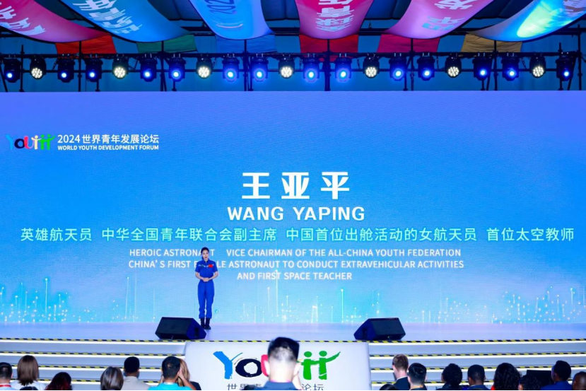 2024世界青年发展论坛开幕式上代际对话环节,中国航天员王亚平发言