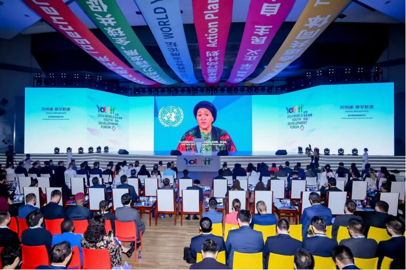 2024世界青年发展论坛开幕式,联合国常务副秘书长阿明娜·穆罕默德通过视频作开幕致辞