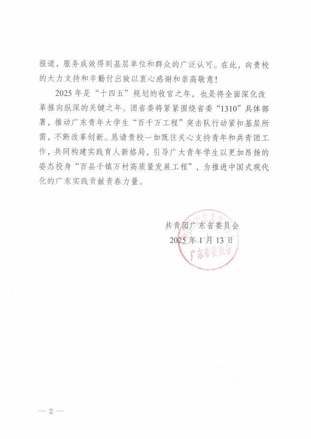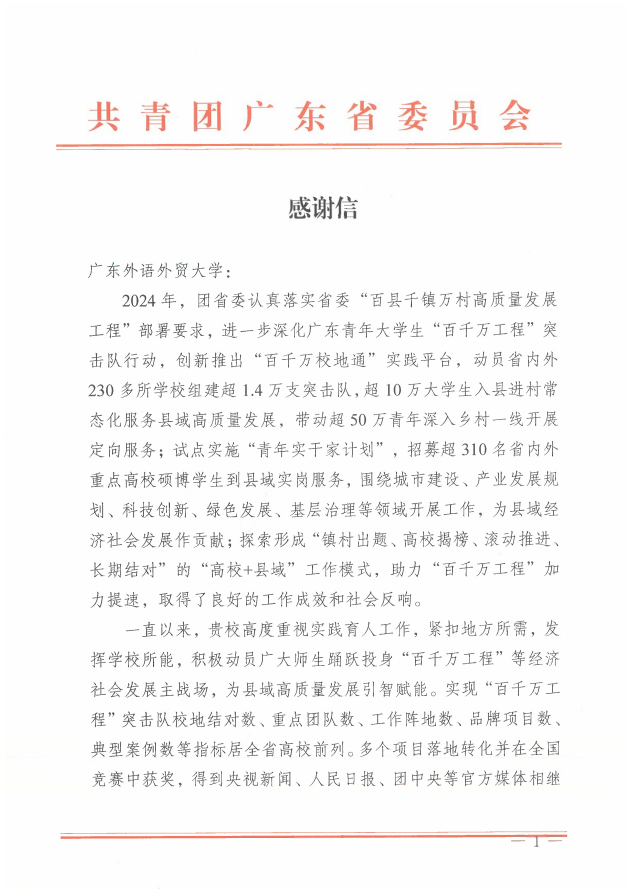 团省委广东青年“伟德国际1946”突击队行动感谢信