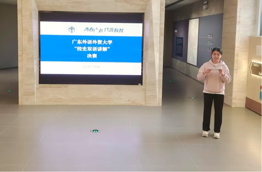 本网讯 1月9日下午,广外校史双语讲解大赛决赛在校史馆成功举办。经过初赛和复赛的选拔,最终有五位选手脱颖而出,站在了决赛的舞台上。选手们来自不同的专业和年级,但他们都对校史怀着深厚的热情,在比赛中展现出了独特的风采。