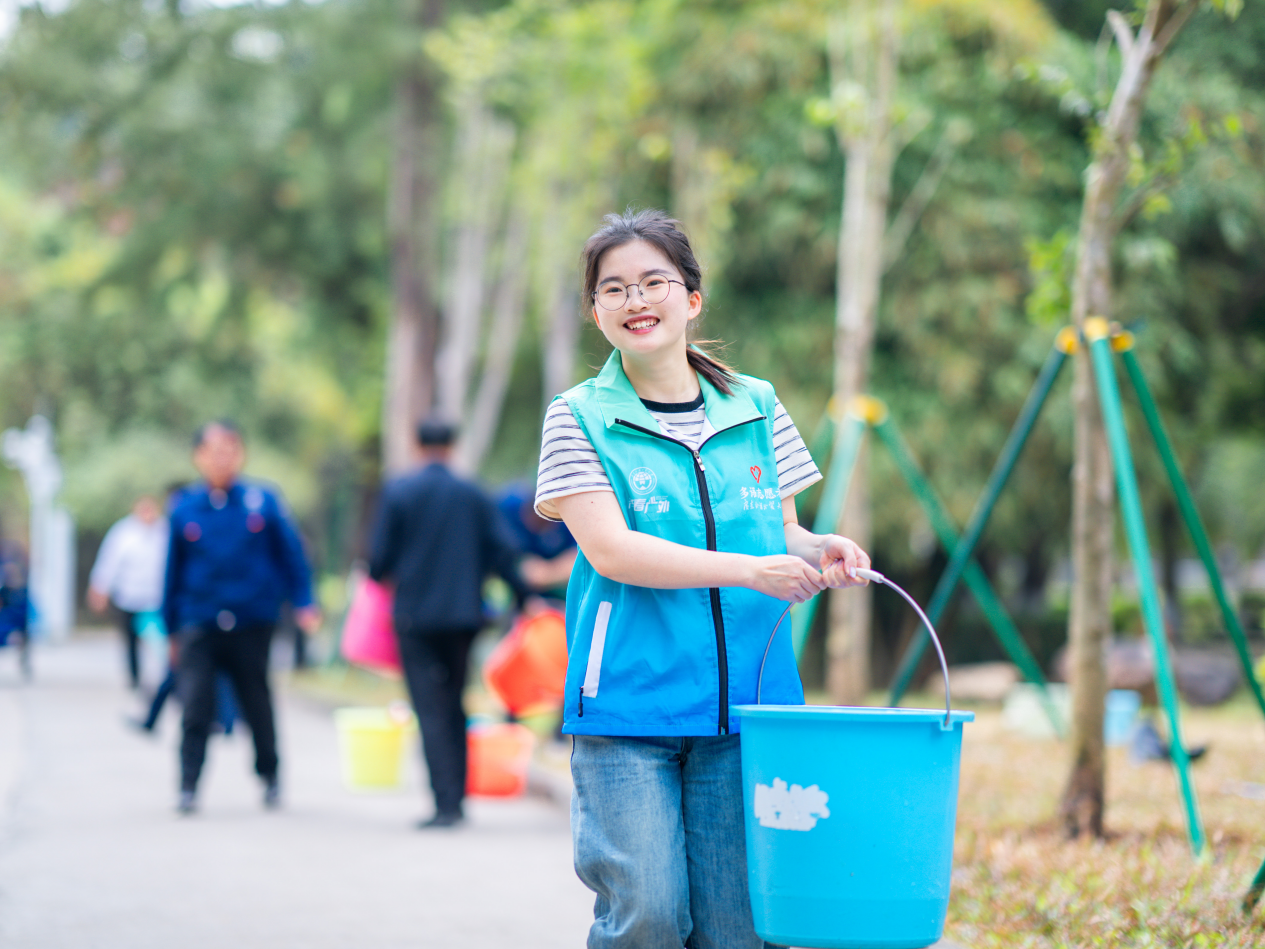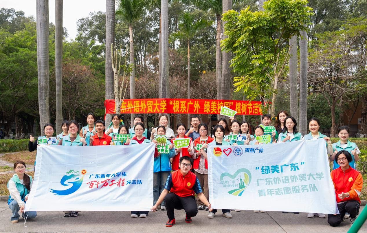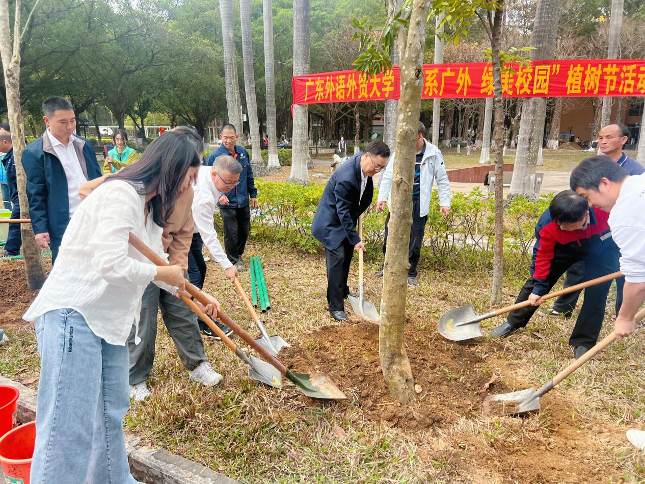 很高兴今天能参加学校的植树活动,为“绿美广东”生态建设贡献一份力量。作为广外青年,我们不仅是校园的主人,更是生态文明的践行者。植树造林,功在当代、利在千秋。愿今日种下的树苗,与广外人的青春一同扎根生长,见证南粤大地的盎然生机!