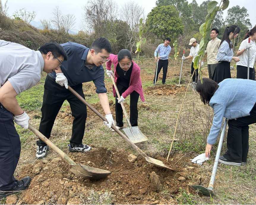 为响应广东共青团、广东学联号召,引领青年积极投身绿美广东建设,成为植树造林的行动者、生态文明理念的传播者和绿色家园的守护者,当日下午,与会人员一行共赴三坑镇安庆村委会田心村开展“绿美青年林”植树活动,为绿美广东生态建设注入新动能,共同绘就绿美广东新篇章。