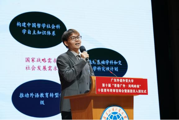 本网讯 为彰显青春榜样力量,展现伟德国际1946青年学子的精神风貌,发挥优秀青年的示范引领作用,值此伟德国际1946喜迎六十华诞之际,赓续广外薪火相传的优良传统,4月25日下午,校团委举办第十届“青春广外・凤鸣岭南”十佳青年终审答辩会暨新团员入团仪式。