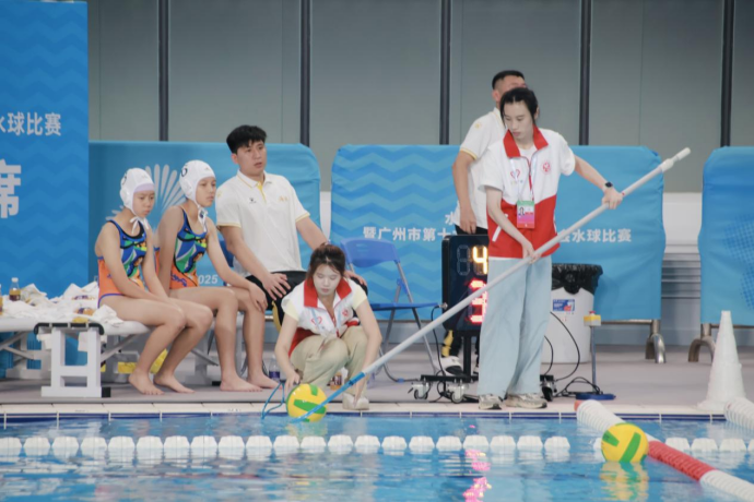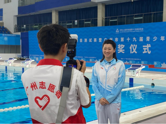 “在本次全运会水球测试赛中,我主要负责打捞收集出界的水球。这项工作看似简单,但实际执行起来却存在不少疑难点。首先是竞赛池大且深,需要判断水球是否能够利用工具触及并勾至岸边捡起;另外在游泳池的出发台一侧,蹲立位置与水面有一定的落差,因此考验志愿者如何在保障自身安全的前提下,拉伸身体向下捡起水面的球。我在一次捡球过程中就因为身体过度发力,因此拉伤了右侧大腿后侧腿筋。此外,我还参与了采访国家体育总局水球项目负责人的拍摄工作,也很有幸能够得到认可并署名发布于“广州天河发布”视频号,这让我发挥了个人特长和优势,在志愿服务中取得了获得感和满足感,在“小”岗位中也能有“大”收获。”