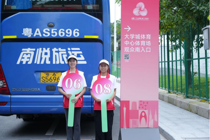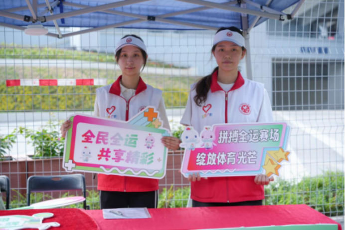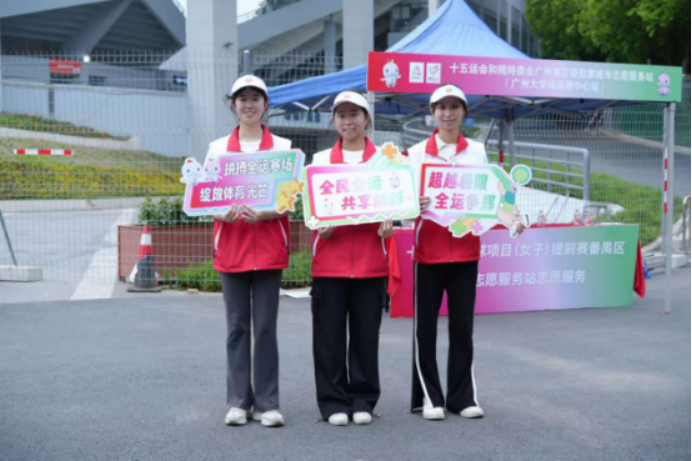 于此同时,在广州大学城体育中心设立的十五运会和残特奥会广州赛区提前赛城市志愿服务站内,75名广外“小海豚”上岗,全力保障十五运会女子u16足球赛站点运转。志愿者们全天候值守岗位,在关键接驳点提供方向指引,引导观众安全有序地进出场馆区域;精准掌握场馆周边公共交通线路和停车场动态,提供出行路线优化建议;深入了解赛程安排,耐心解答各类赛事咨询;同时配备基础急救物品并掌握应急流程,高效协助处理观众身体不适或物品丢失等突发状况。他们以规范服务和真诚沟通,有力保障各服务站平稳运转,将广州的热情温度传递给每一位来宾。