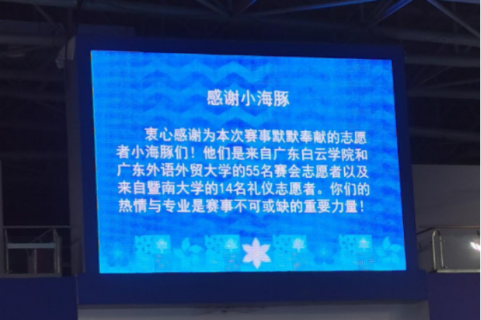 “很荣幸能参与全运会水球项目测试赛的志愿服务。在本次工作中,我主要负责更换比赛项目牌和打捞出界水球,任务虽不复杂,却处处需要留心。真正站在赛场一角,目睹运动员们在水中奋力拼搏,耳边回响着观众席上此起彼伏的掌声与欢呼,我愈发深刻地体会到:每一场比赛的顺利进行,都离不开无数志愿者与工作人员的默默守护。这段经历不仅让我初步了解了全运会赛事服务的流程,也让我结识了一群充满热情、团结协作的‘小海豚’伙伴。期待在未来的正式赛中,我们能继续以‘小海豚’的微光,点亮更多值得铭记的精彩瞬间。”
