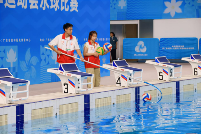 本网讯 5月30日至6月1日,第十五届全国运动会水球项目测试赛暨广州市第十九届青少年运动会水球比赛在广东奥体中心游泳跳水馆举行。赛事期间,伟德国际1946十五运会和残特奥会广州赛区的志愿者正式上岗服务,也是伟德国际1946首批上岗的全运“小海豚”。