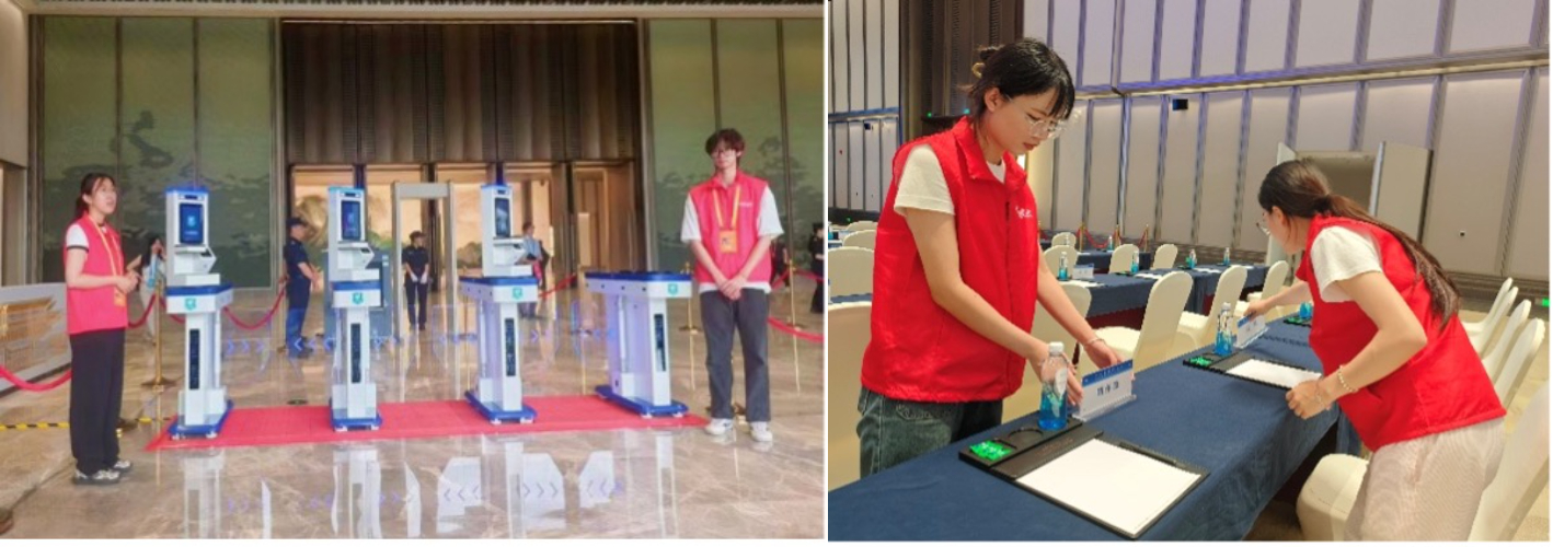 在服务过程中,48名广外多语志愿者分布在活动现场各关键岗位进行服务。在办证服务组,志愿者们迅速完成了证件的分类,能够熟练地操作证件系统,高效有序地完成了办理和派发证件的任务,为嘉宾按时参与活动提供了及时的服务保障;负责联络参会人员的同学则充分发挥广外的语言专长,向参会嘉宾介绍活动行程、确认名单,保障嘉宾的行程安排无误;在场地指引组,志愿者提前熟悉了会场布局和活动议程,为参会的嘉宾们指引最优路线,答疑解惑,确保了活动的顺利进行。