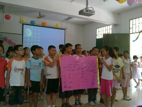 小汇演暨告别会 今天是我们在井岸二小三下乡的最后一天。 今天是我们让小朋友们表演自己准备已久的节目的时间。 今天也是我们深情告别二小可爱的小朋友们的时刻。 从早上八点开始我们就忙碌着布置场地、为下午的小汇演做好充足的准备。 气球、彩带、纸道具等等、整个场地美丽可爱但我们看着这个布置完善的场地,却莫名的感到伤感,离别在即了。 下午小汇演开始了。 第一个节目是啦啦操,由五年级的女生们表演。 看她们可爱活泼的舞姿,充满着青春的气息,在这离别的时刻让我们稍稍感受到了快乐。 第二个节目是武术,同样也是由五年级的同学们表演的,但这次是稍稍带点顽皮的男孩子们。 看着他们小小的身板打出有着不小的力劲的拳,让我们欣慰,这些天的训练没有白费,他们的表现就是我们最好的回报。 第三个节目是小红帽与大灰狼。娇小的小红帽,憨态可掬的大灰狼,俊俏的小猎人……看着他们,不禁想到我们的排练,他们每天下午一放学,都会准时来到休息室,乖乖地、认真地排练。想到可能以后再也不能看到他们的笑脸了,心里难免会觉得遗憾…… 接下来的节目还有四年级的英文歌曲串烧、五年级的大合唱,完了之后,孩子们捧着一张签满了留言的彩纸上来了,两个代表发言的女生说着说着,就哽咽了……台下也隐约响起了孩子们的呜呜声…… |