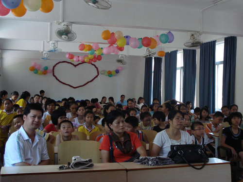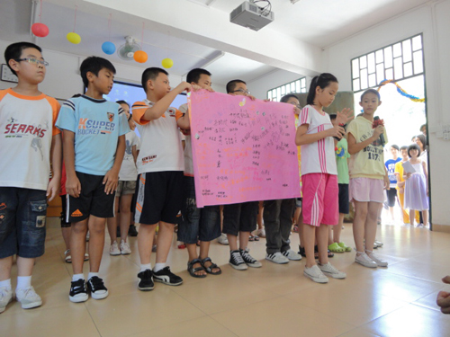 接下来的英语串烧歌曲、英语大合唱再次把会场的气氛推向了高潮,我们梦想巴士的队员们也一次一次地被这群乖巧可爱的孩子们牵动着情绪,“老师”们脸上都挂着幸福欣慰的泪水,这次的三下乡活动必然成为我们人生中最亮丽的一抹风景线。