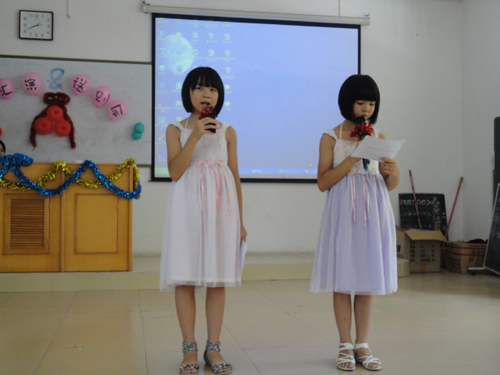 甜美的嗓音,羞涩的表情,双胞胎主持人拉开了小汇演的序幕。这对天使般的双生儿虽然表现有些瑕疵,但她们脆脆的嗓音一下子吸引了观众的注意力,台下的小朋友都目不转睛地盯着舞台,家长老师们也乐在其中。