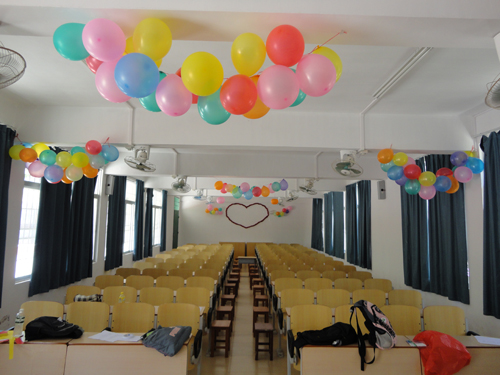 充满气球的梦幻礼堂是我们一个早上的劳动成果。从一泵一泵地充气球到一串一串地挂气球,点点滴滴,都是我们的印记,这里充溢着我们的回忆,满满的都是欢乐与祝福。