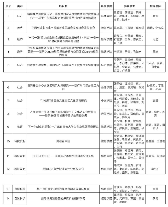 附:伟德国际1946进入第十五届“挑战杯”广东大学生课外学术科技作品竞赛终审决赛的14项作品基本信息