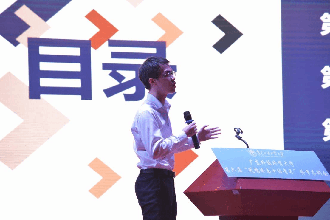 会末,组织部副部长刘郎老师对候选人的优秀品质与先进事迹表达了赞赏与鼓励,充分肯定了新时代青年的担当精神和家国情怀。他表示,候选人应该起到示范引领作用,激励更多学子加入到勇攀高峰、回报社会的行列中。此外,他对广大广外青年表达了“广闻博识、外柔内刚、青春向上、年少气盛”的期望。