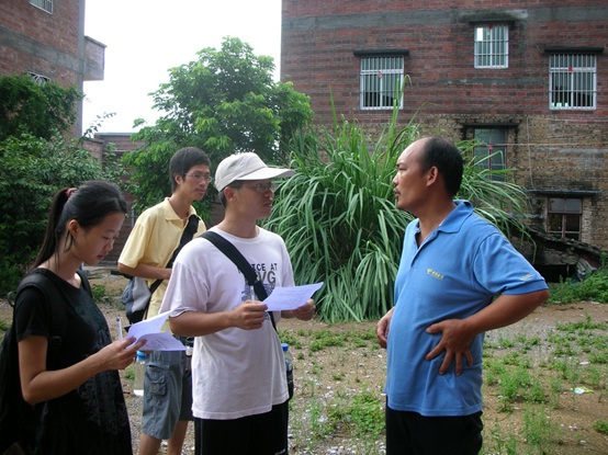 继赤坎村之后,调研组一行相继“转战”金钱岗、中村。调研组收集的数据越来越多,头顶上的阳光也变得越来越灼热,每个人都汗流浃背。但是,没有一个人喊累,没有一个人停止前进的步伐。全组人都积极地投入到新的采访中去。就是凭着艰苦拼搏的精神,在经历过种种考验后,调研组当天收集了34份调查问卷,为当天的行程划了完美的句号。