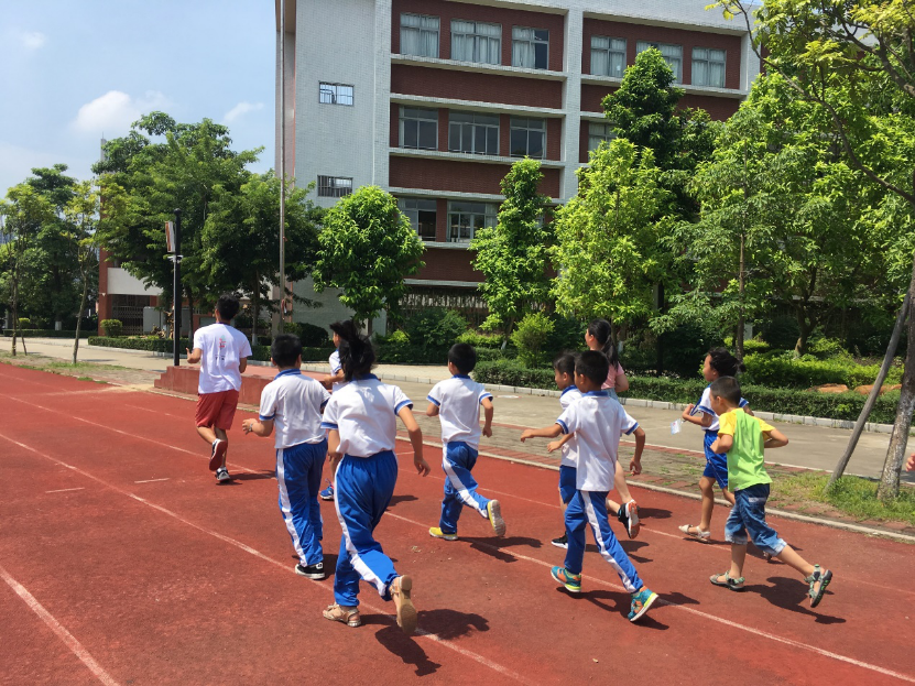 趣味乒乓课上老师带学生热身跑步